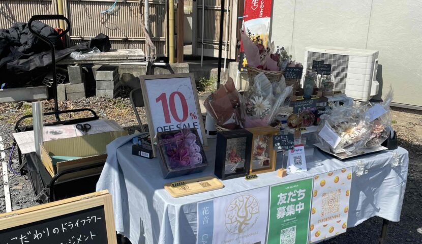 只今桜花マルシェ開催中です。